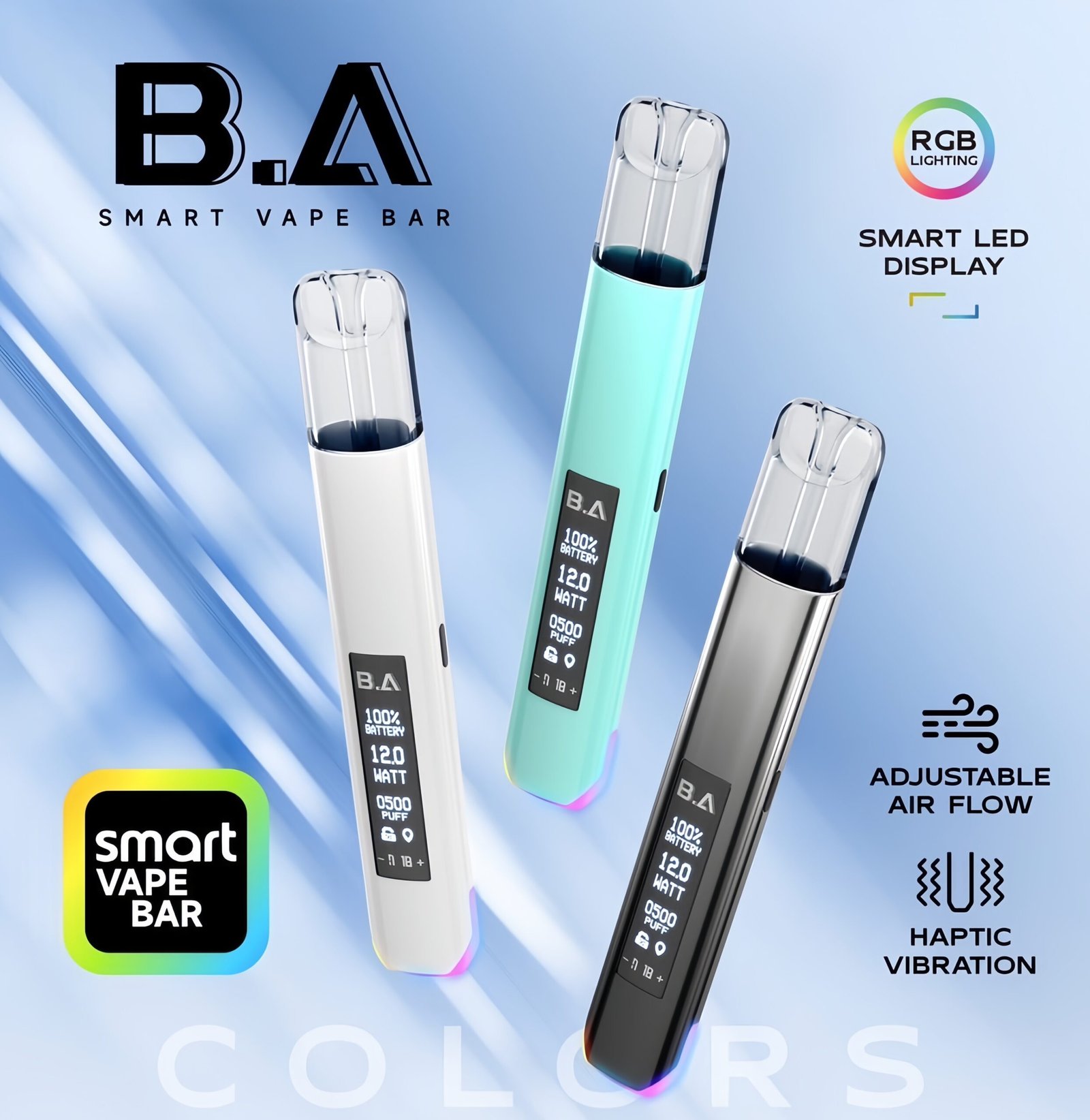 全新B.A一代主機 全新設計LED可調式顯示屏主機,為用戶提供了一款集時尚設計、智能溫控與高效續航於一體的高端Vape主機體驗。B.A一代主機採用高端漆面工藝,呈現獨特的光澤和質感,這款主機不僅時尚大氣,更是能彰顯使用者的高貴品味和獨特個性。